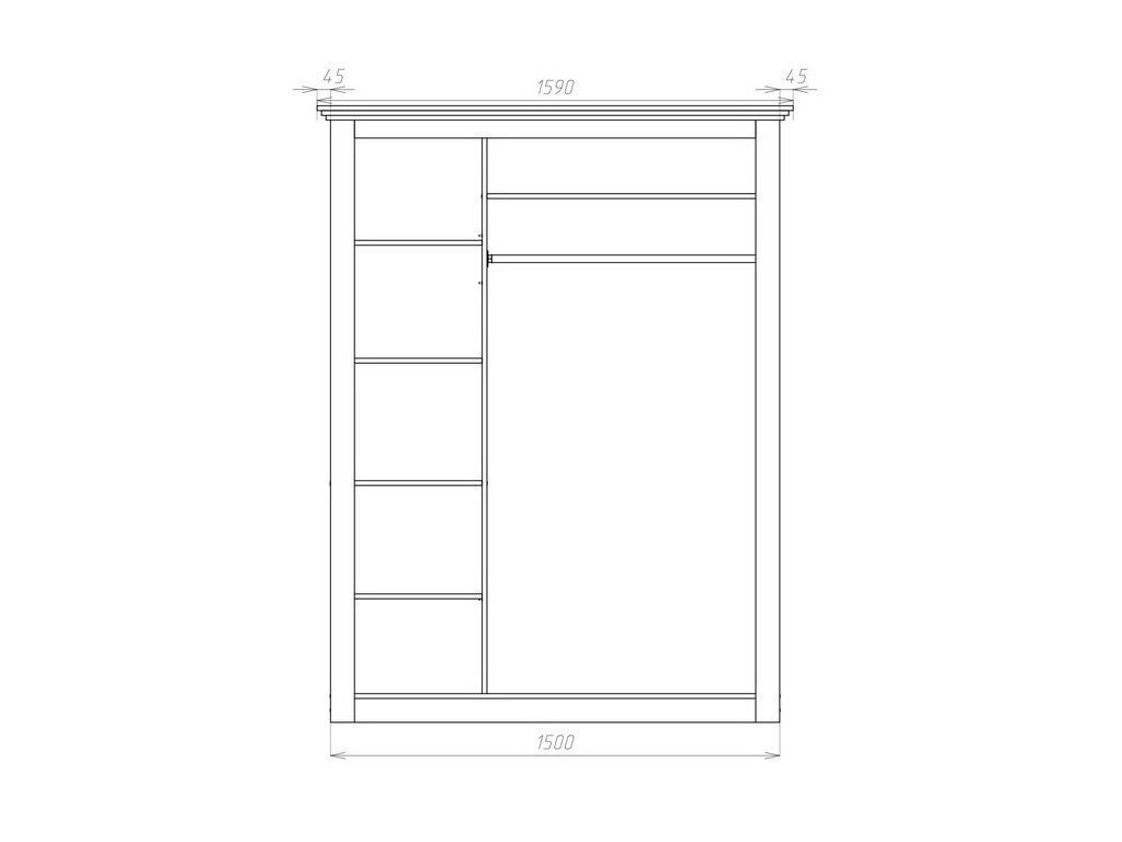 6. При высоте шкафа 1900 и 2000 мм текстура ЛДСП располагается горизонтально, как на фото. При высоте от 2100 до 2500 мм текстура располагается вертикально.