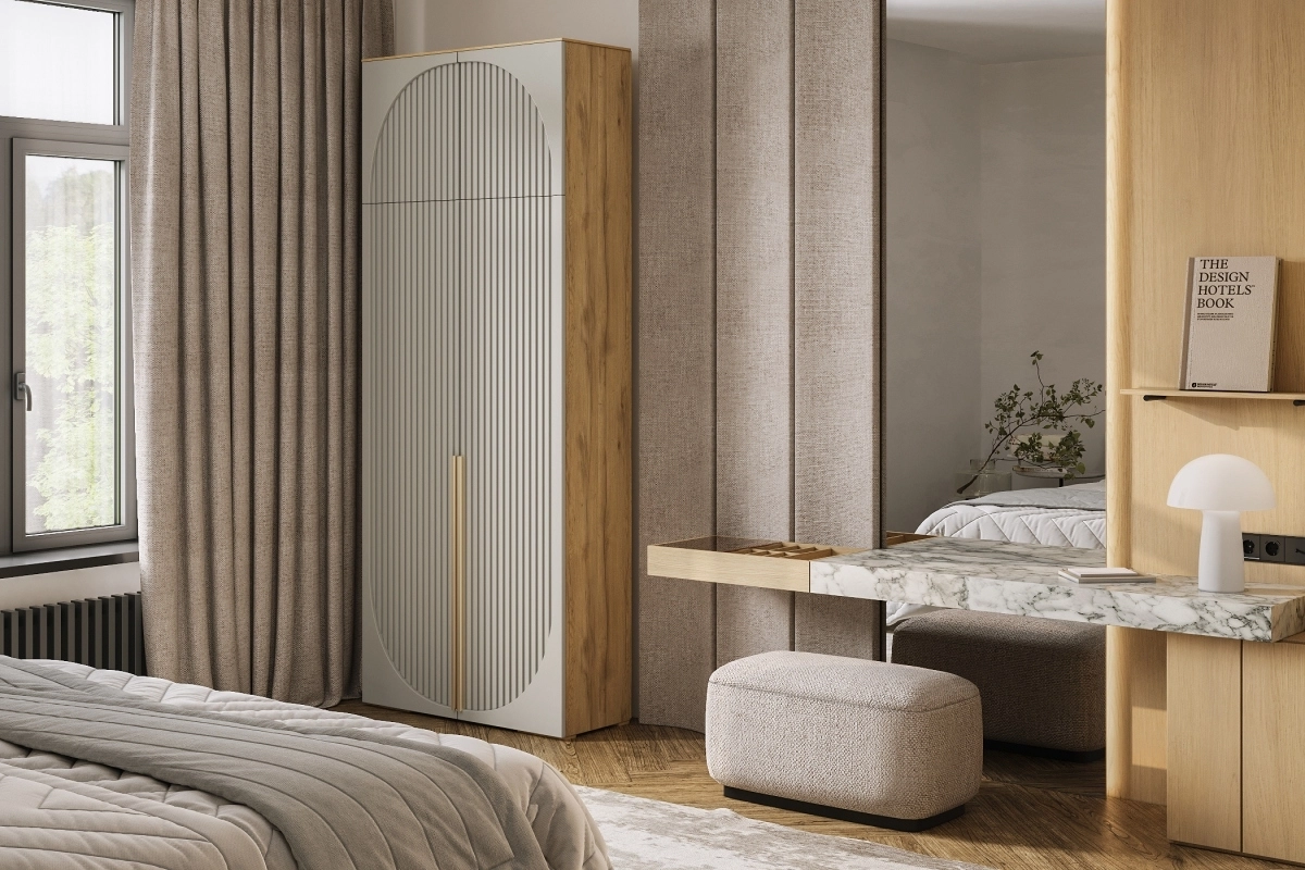 Шкаф распашной Брей-1 с антресолью Кашемир/Дуб Золотистый