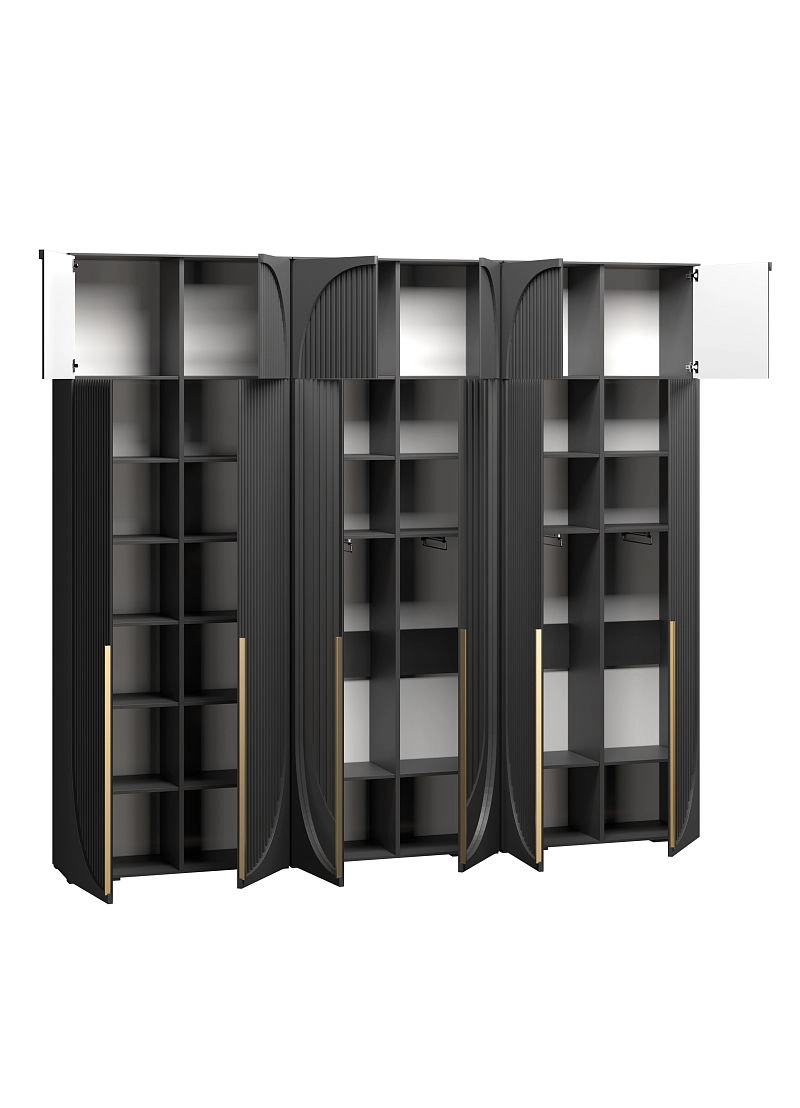 Размер отделений в каждом наполнении изготавливается по стандарту фабрики и может отличаться от фото. Если вам необходимы определенные размеры отделений в наполнении согласуйте это в чате с менеджером. При высоте шкафа 230-270 см антресоль слитная, 280-310 см съемная.