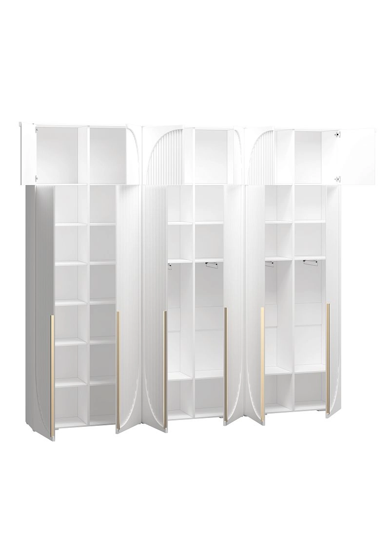 Размер отделений в каждом наполнении изготавливается по стандарту фабрики и может отличаться от фото. Если вам необходимы определенные размеры отделений в наполнении согласуйте это в чате с менеджером. При высоте шкафа 230-270 см антресоль слитная, 280-310 см съемная.