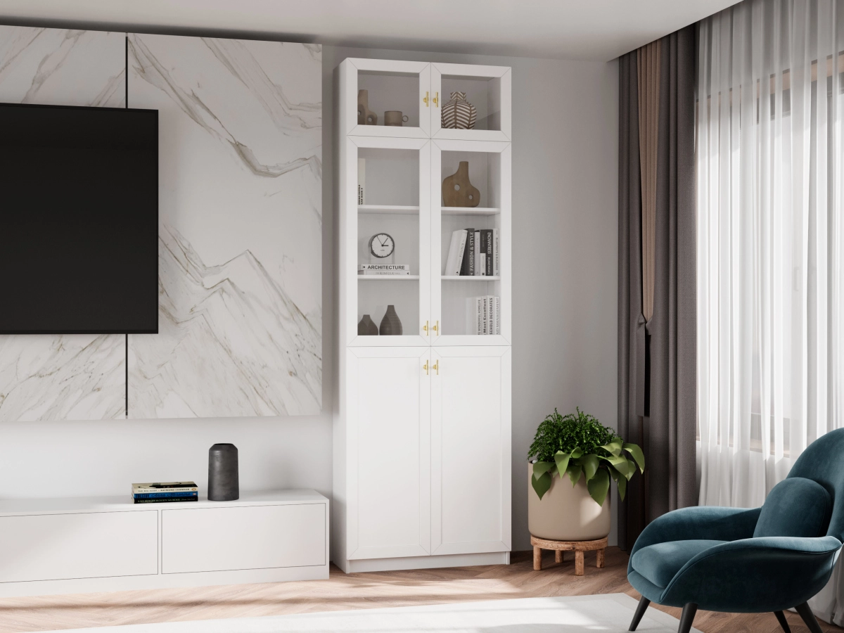 Стеллаж Билли Хелена-21 с антресолью Белый/Золото продаётся в разнообразных цветовых решениях. Выберите один из 74 цветов корпуса и один из 72 цветов фасада, чтобы получить неповторимый дизайн своего стеллажа. Только у нас вы можете купить этот стеллаж из высококачественных материалов по самой низкой цене.